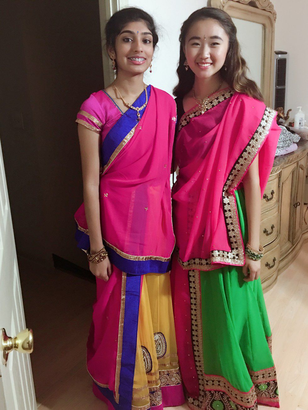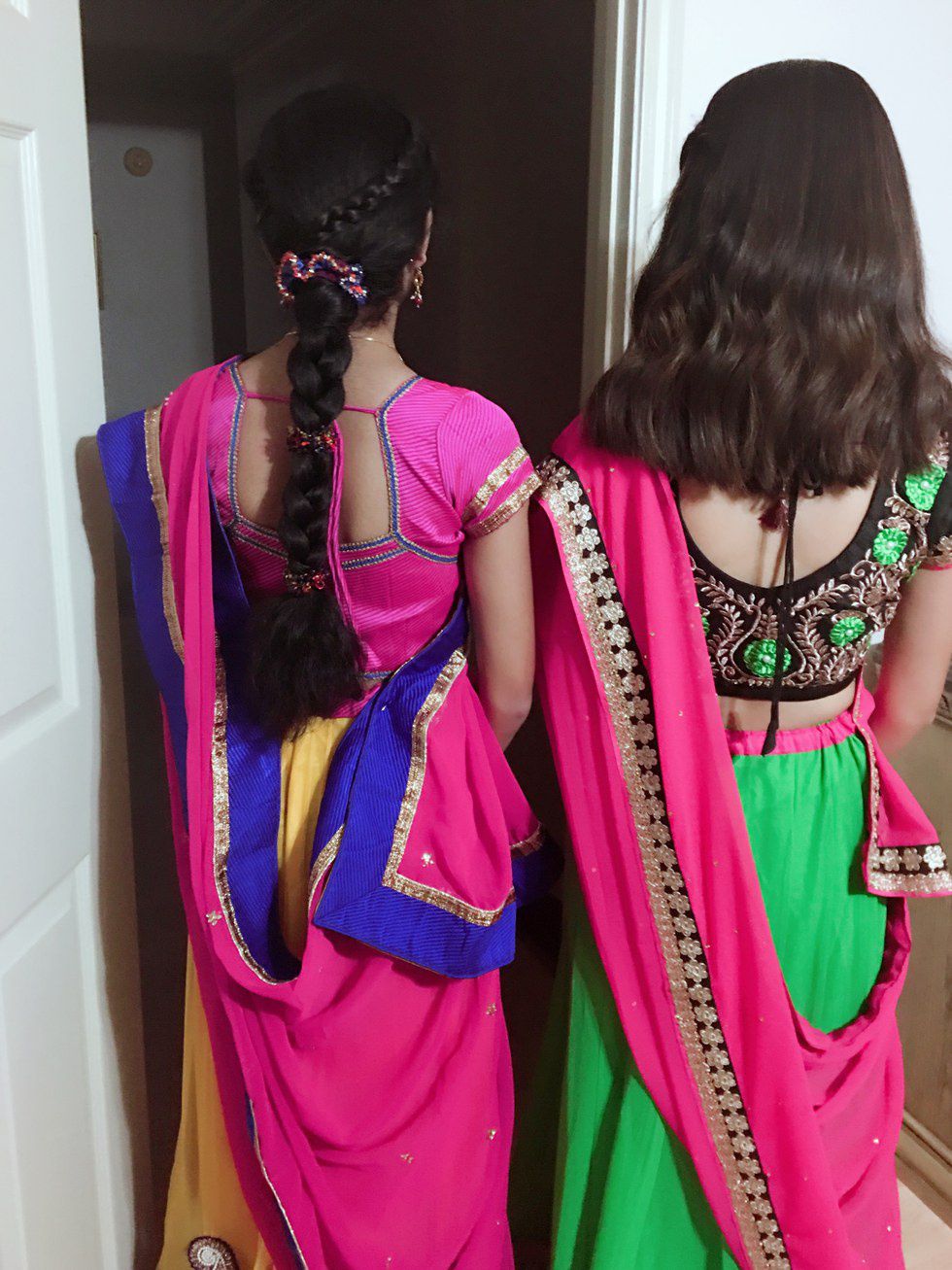 A few weekends ago, I attended my first garba with my friend who is actually from southeastern India. Since she is from a different part of India than the Gujarati, she had never heard of the garba dance and had no idea how it worked or how we should dress. We spent a good three hours just getting ready, putting on lots of (fake) gold jewelry, makeup, and saris, Indian scarves that wrap around a dress.