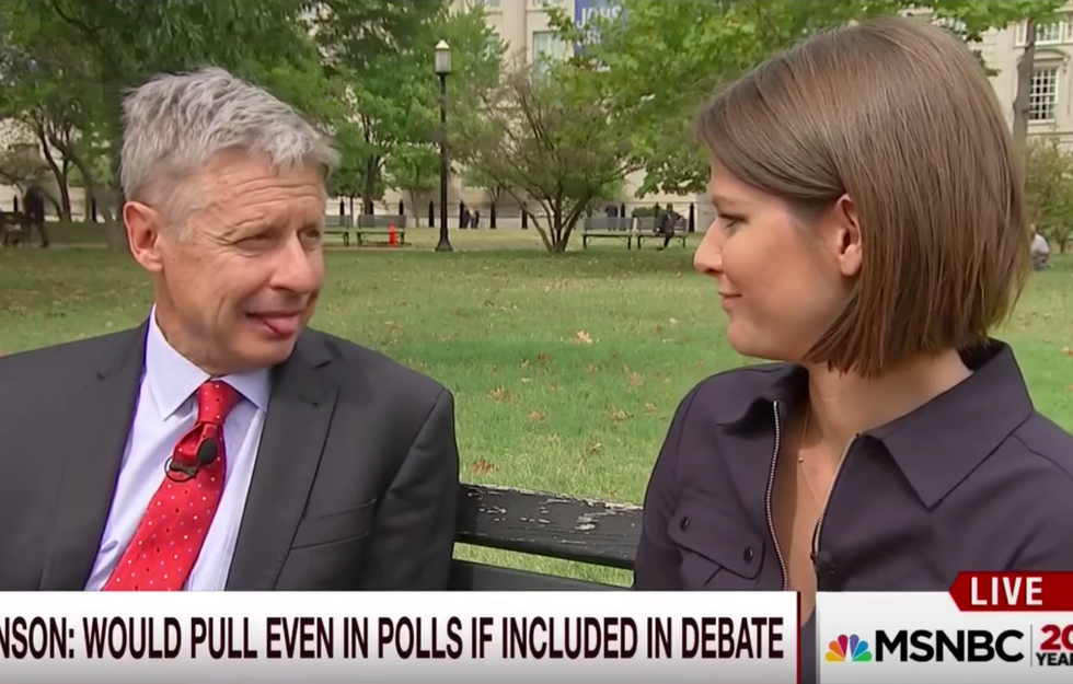 Now, if you are thinking "well that is a common mistake," let me now point you towards an interview with him during another MSNBC Morning Joe. Johnson is simply being interviewed on wanting so badly to be featured in the debates. Sadly not reaching the requirements to be featured in a debate, Johnson finds that sticking his tongue out at the American people in "distaste" would be much easier than a debate. He goes into great detail about how he would do the debate, but for some reason has lost all control to his tongue. The reporter Kasie Hunt jumps back in disgust as soon as he starts to talk with his tongue out. I would love to see Johnson do this to Putin or even Kim Jong Un-- he might discover that the debate is not the only thing he would lose.