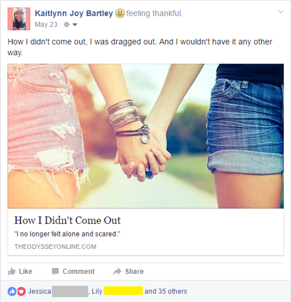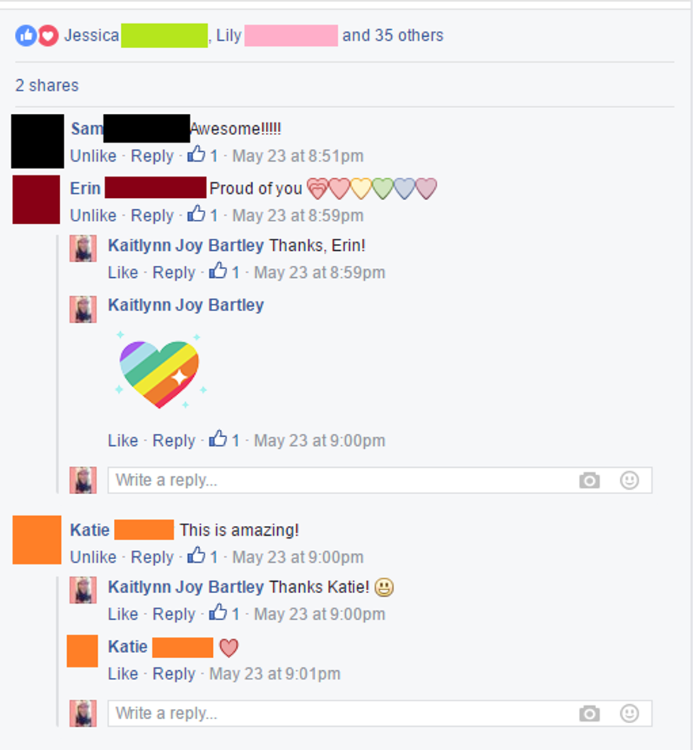 Here's the response I received from my original article coming out to my friends and extended family. Cousins, aunts, uncles, friends and basically everyone in between showed their support, and it really meant a lot to me.