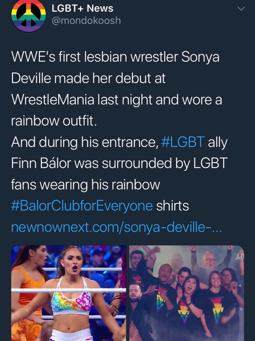 The two big supporters demonstrated efforts in promoting the LGBTQ community at Wrestlemania recently. Sonya Deville is the first openly gay woman in the WWE family and Finn Balor sported a rainbow themed outfit whilst being accompanied by members of the LGBTQ community during his entrance.