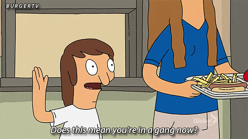 As of April 25th, my boyfriend and I will be celebrating two years of being together. Now I know there are people who have been in relationships for a lot longer than that (those weirdos who've been dating the same person since freshman year of high school, for example). This probably seems like a drop in the bucket for you veterans of the dating world. But for me, two years is a long damn time, and I'm proud as hell of the relationship my boyfriend and I have cultivated. Originally, I was going to make a really sappy post about how precious these two years have been, how lucky I feel, etc. But then I decided to do something better. So here's my two-year relationship (and to some extent any relationship of equal length) as described by Bob's Burgers GIFs. I hope you enjoy them as much as we enjoy binge-watching this magical show!