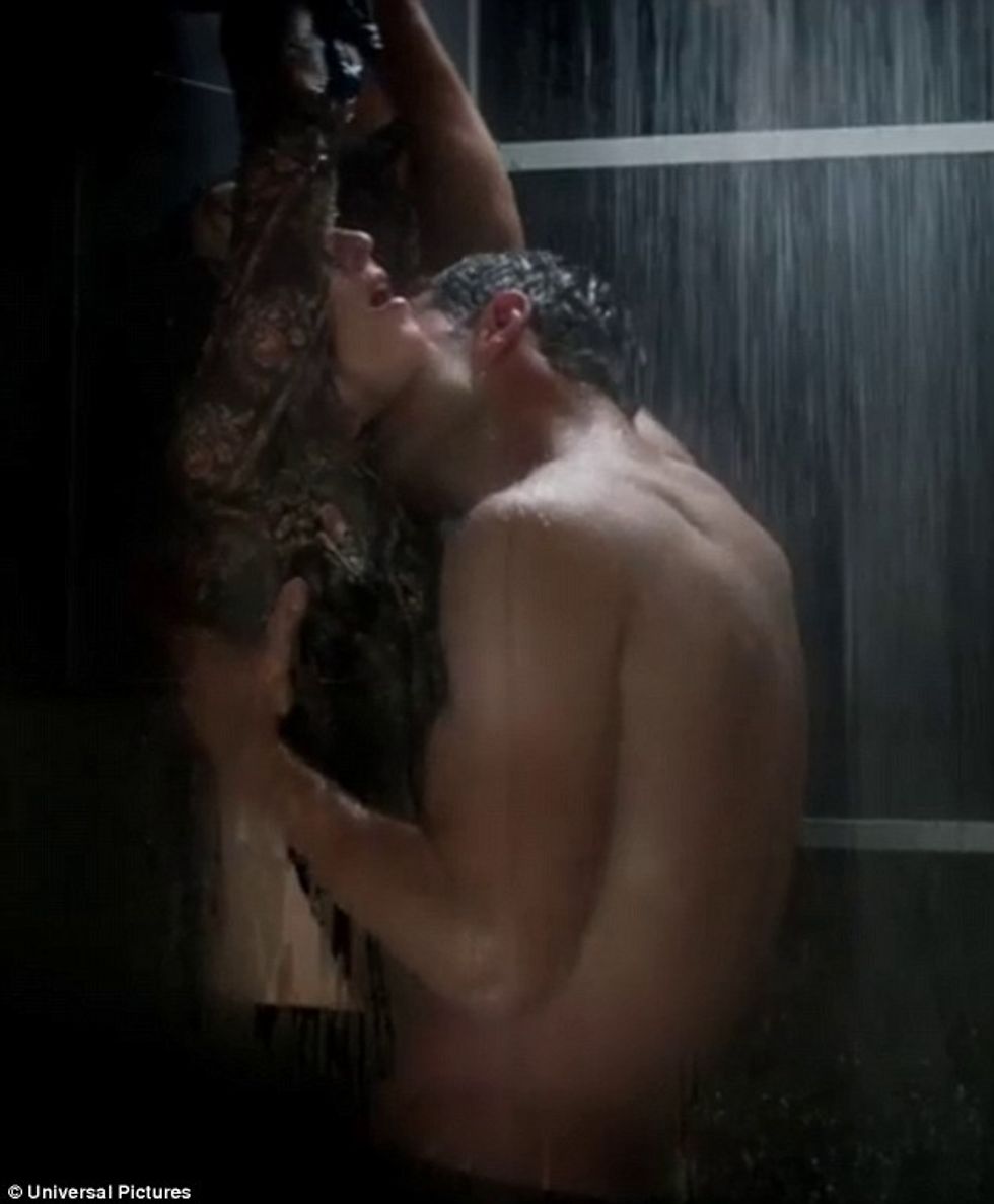 As hot as it looks in "50 Shades," it's more annoying than anything and you will never finish in the shower.