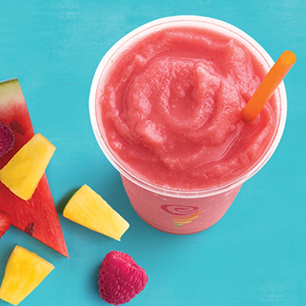Even though it is a summer drink, the Jamba Juice here on campus still serves it. The Watermelon Breeze contains watermelon juice, raspberry sherbet, strawberries, and pineapple.