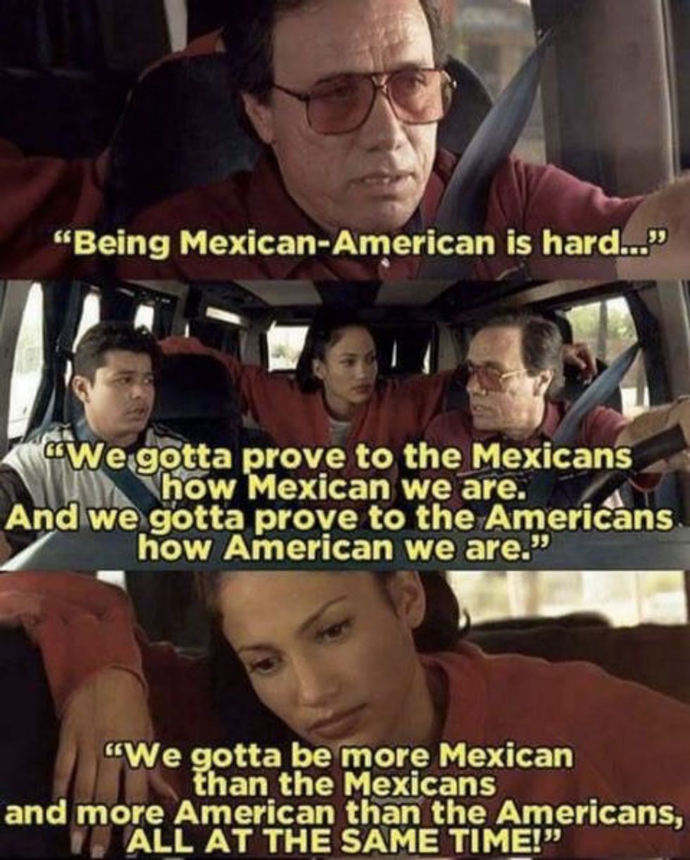 Only we can understand what it is like living in two worlds at once and not being able to fully fit into either. It’s a never ending feeling of not fitting in and not being good enough. It’s being told by your Mexican family members that you aren't “Mexican” enough because you were born in the United States, making you a “gringa”—making you too American—. It’s being told by your American counterparts that you aren’t American enough because you are Latino— too Mexican—, because you speak another language, because you have a different culture. It’s being told by society that you can’t identify as Mexican and American, that you much chose one or the other.