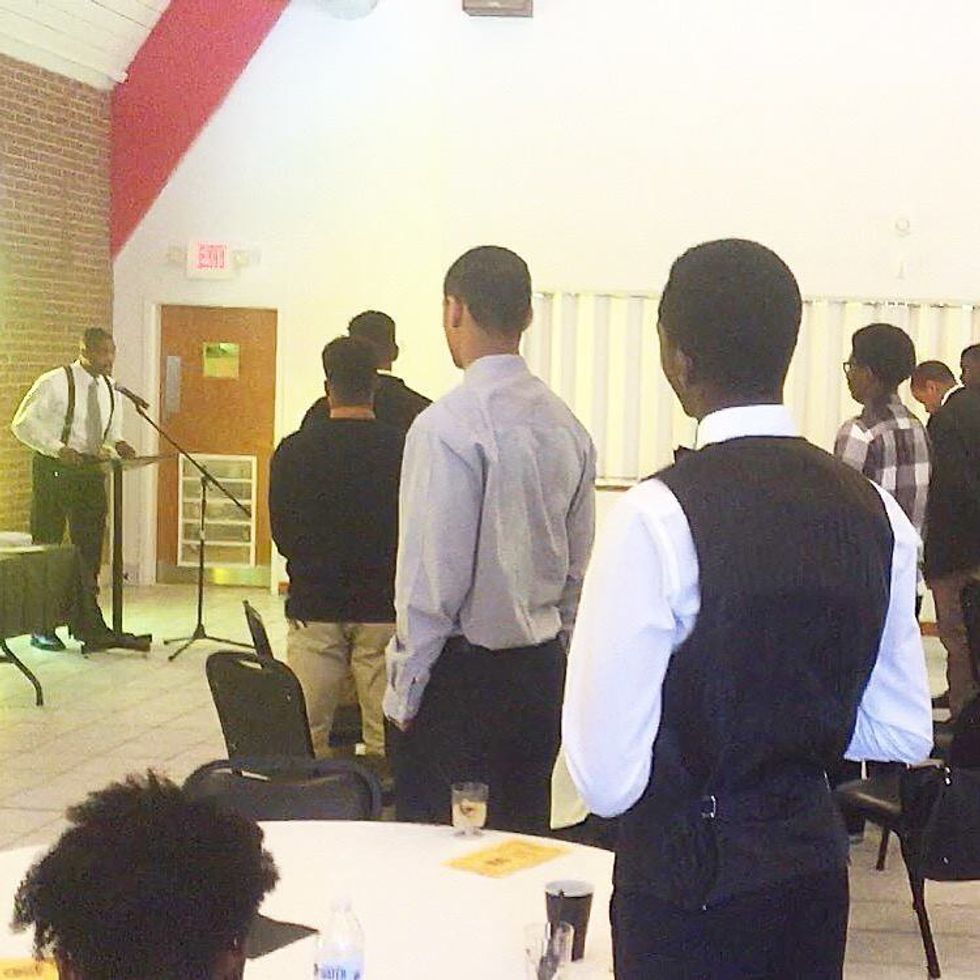 Malcolm speaking at the Epsilon Nu Lambda chapter of Alpha Phi Alpha Fraternity, Inc. as an honored guest.