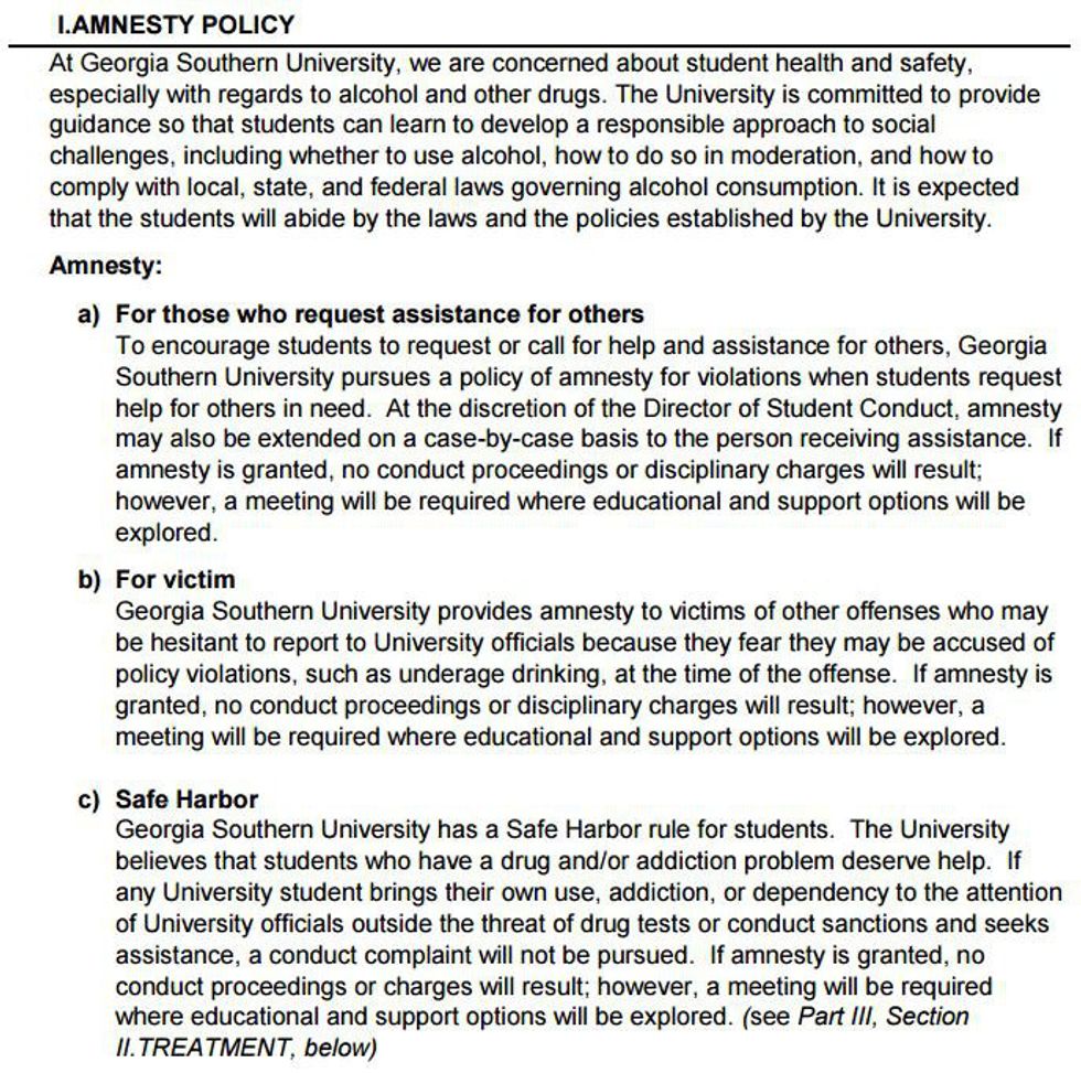 While it always has been my wish that students had the same blatant disregard for the rules when asking for help as they did when committing the acts that got them in that situation in the first place, now they do not have to. Georgia Southern has passed a Medical Amnesty A.K.A. “Good Samaritan Policy” in our student conduct code. If you are in a bad situation and you do the right thing, you will be protected. Here is the policy taken from the Student Code of Conduct: