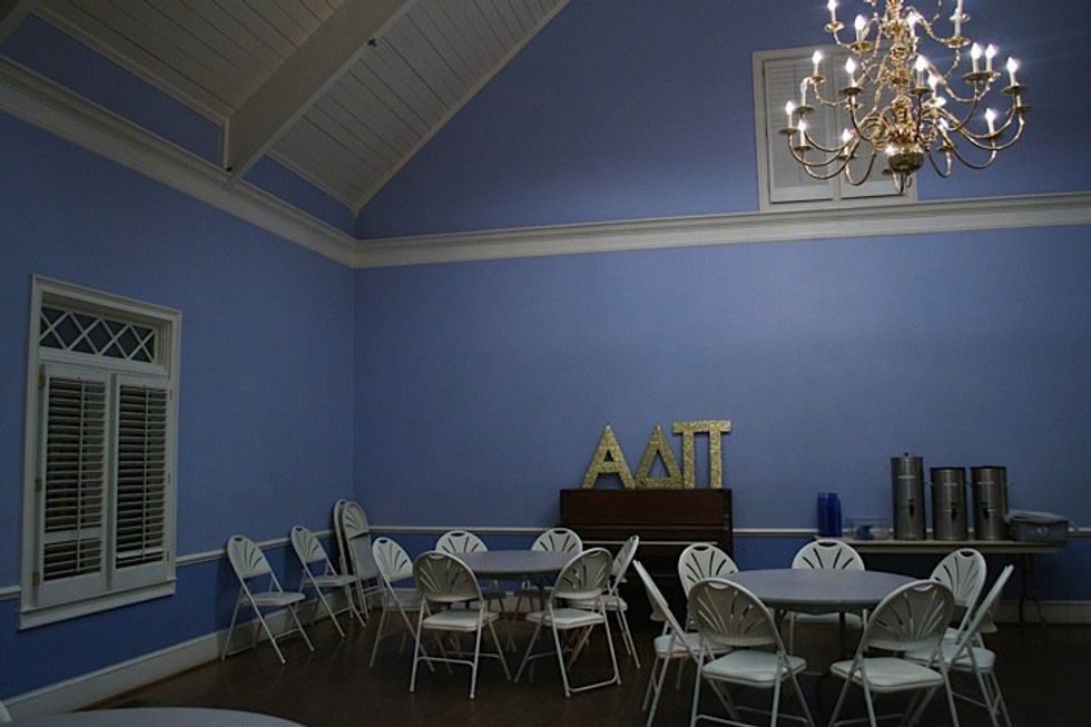 The sparkling chandeliers, high ceilings, and bright periwinkle walls make the chapter room a beautiful backdrop for meetings and meals alike. This room is also ideal for group project meetings and studying in general, which is very important to Alpha Delta Pi (who has maintained the highest sorority GPA on Tech's campus for the past several semesters).