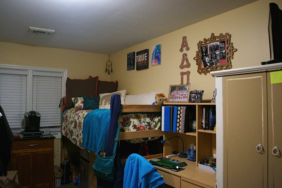 While I don't technically live in the house, I sometimes feel as if I do, especially when we are all getting ready together in the residents' rooms upstairs. Outfit options become almost infinite because you have your sisters' closets to shop in. The girls can paint the walls whatever color they want and everyone decorates with their own unique flair; no two rooms are alike.
