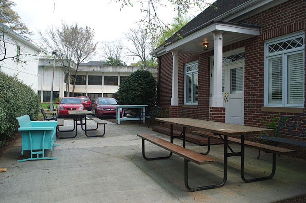 Last but not least is the side patio. Hidden behind trees, the picnic tables and benches out here make it the perfect spot to unwind on a nice day. This area offers a cute and quiet place for quality time with sisters.