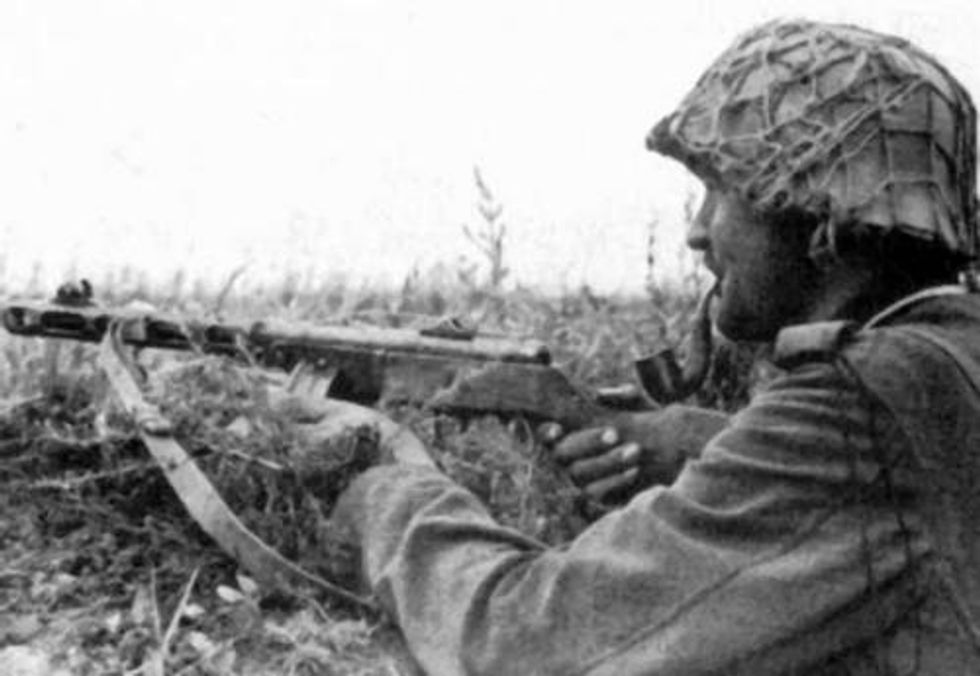 The Germans' own sub machine gun, the MP-40 was no match for the monstrous firepower that the PPSh-41 provided for the Soviets.