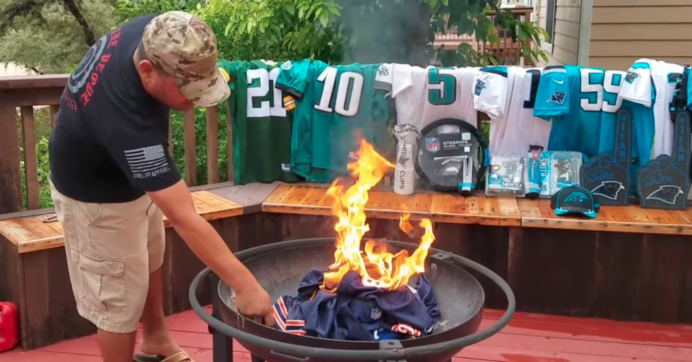 Okay, now onto what really grinds my gears (As if they're not already ground enough): HOW PEOPLE ARE BOYCOTTING THE NFL!? Burning all of the merchandise, single-game tickets, season tickets that YOU bought with YOUR money?! Yeah, smart. I'm sure the NFL is scared now! They already have your money, and now you're just wasting it. As cheeto-man (Donald Trump) would say: Sad. I really hope all of you realize that you're just basically burning your money. Also, a true fan to their team would never burn anything with their team's logo on it, no matter what. This is also showing who is just a fake fan.