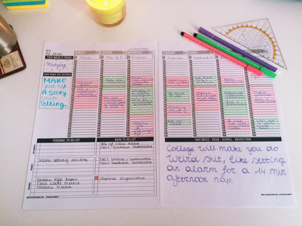 Make your own deadlines for assignments so you don't end up procrastinating. If you have two assignments due on the same day, make your own deadline so one gets done earlier than the other. This ensures a clear mind and not having to worry about two things at once.