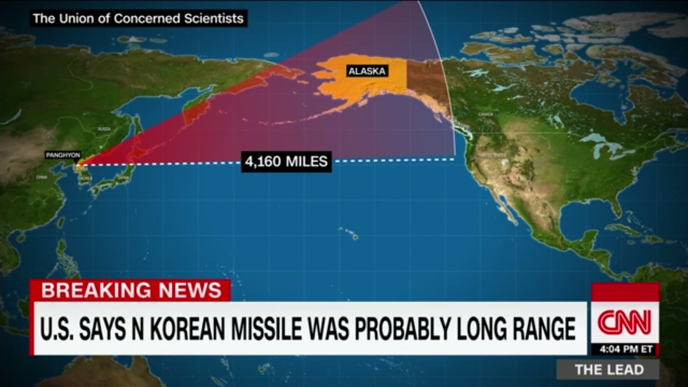 As of now, results from the recent missile launch show that it traveled more than 580 miles within 37 minutes. After calculating the total range of the missile, experts concluded the missile could travel a total of 4,160 miles from Panghyon, North Korea. In other words, the missile can attack all of Alaska since it's only a couple hundred miles away from the coast.