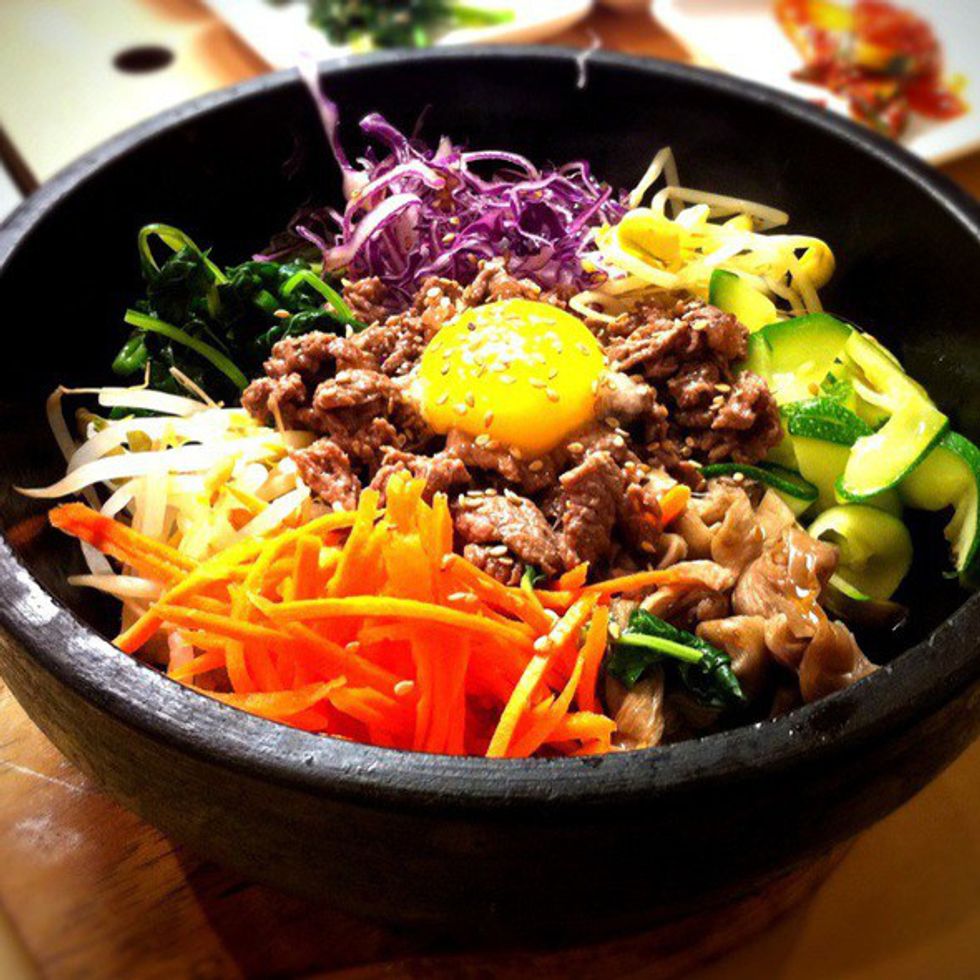 Try the dolsot bibimbap. This is one of my favorite dishes of all time. This dish comes in a hot pot, and it has many different ingredients in it. There is rice, kimchi, carrots, bean sprouts, mushrooms, meat, egg, and many other items. To add flavor to this, they give you a sauce that is honestly so amazing, it makes the dish. You mix all of these ingredients together and it is so tasty. Hands down this is my favorite Korean dish.