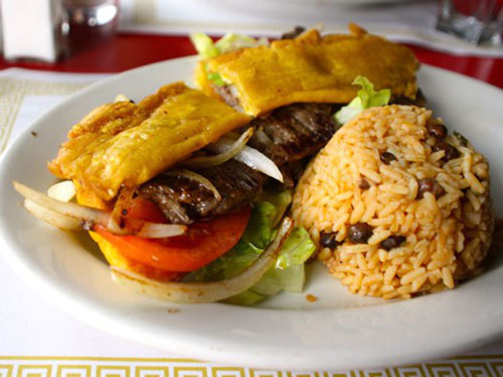Try the Jibarito. This is my favorite Puerto Rican dish. It is a plantain sandwich, and it is a delicious guilty pleasure. The plantains are deep fried and used in place of buns or bread. In the middle, you can choose a meat such as steak, chicken, or pork. They place a slice of American white cheese on this and put other ingredients such as tomatoes and lettuce. Usually, they put garlic oil on the plantain, or give you a side of it to put it on your sandwich. This is a greasy, yet very island/Caribbean deep fried pleasure. I have been to Puerto Rico, so ever since then my family was inspired to make and have more Puerto Rican food. My parents have made jibaritos at home too.