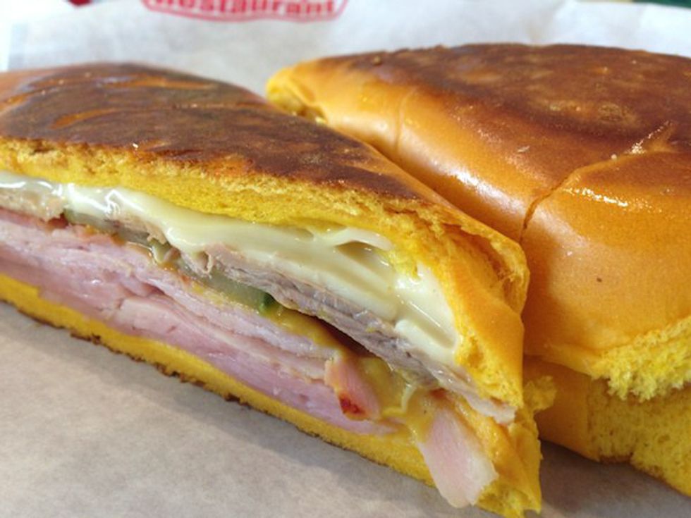 - Try the medianoche sandwich. This is a classic Cuban sandwich that is worth the try. It contains roasted pork, ham, swiss cheese, and other ingredients. The bread is sweet, and this is what makes the medianoche different from the regular Cuban sandwich.