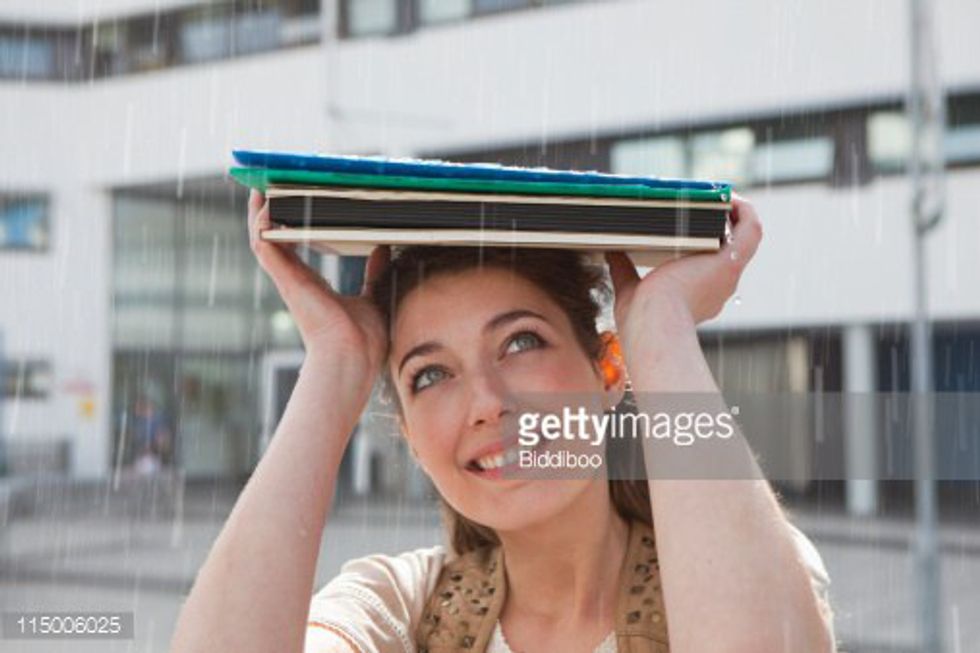 If you get stuck in the rain while walking to class, don't go buy a $20 umbrella from the store on campus. Just use your textbook as an umbrella instead.