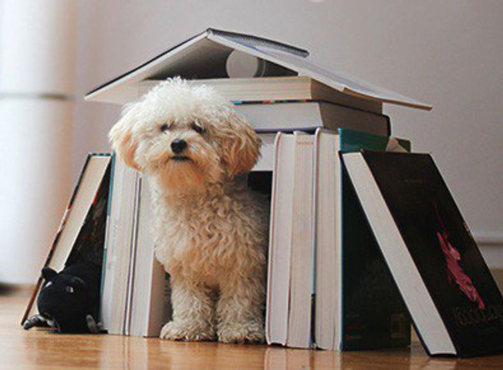 If you have a cute little furball, they would love this idea! Build your pet a house out of your old textbooks to make them feel smart and cozy.