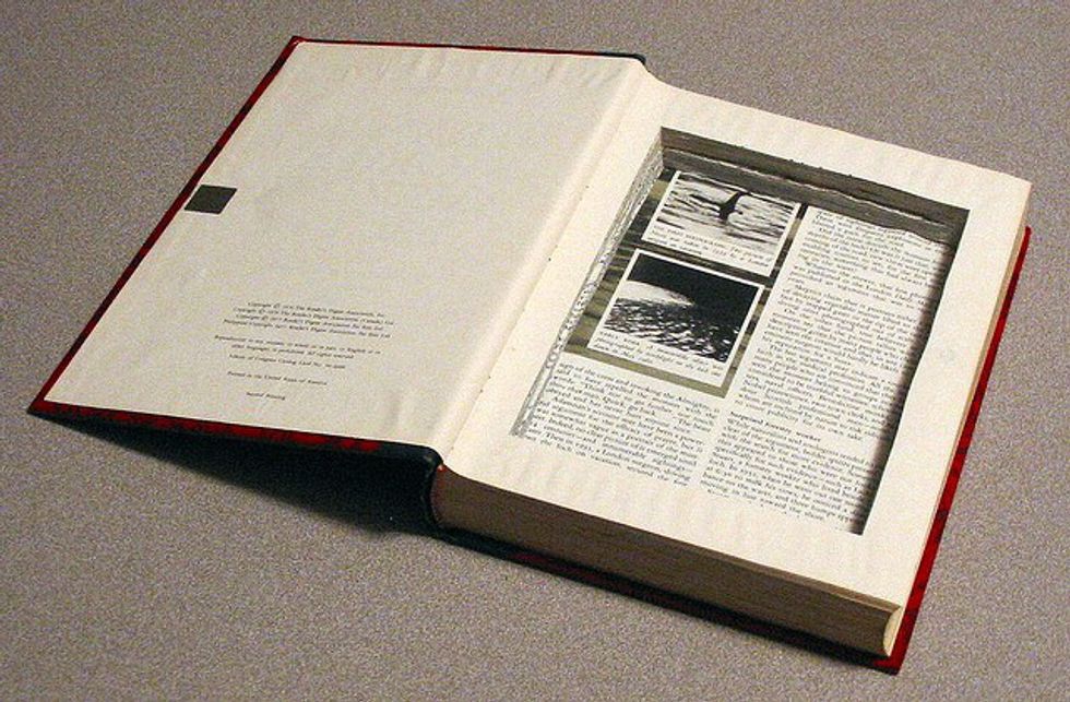 I'm sure you have been to someone's home where they have decoy books laying around that open up and act as a container. Cut the center out of your textbook and use it the same way!