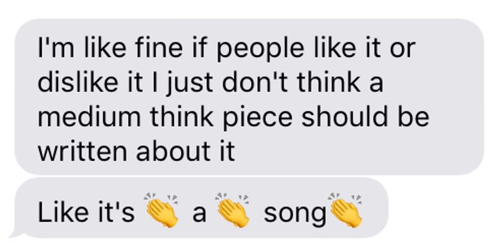 And truthfully, the new single is just...funny. Everyone stating problematic things about her off of a 3 minute song brings her more publicity - why else is the song #1 in the US? The fact that people who state they don't care about her that are tweeting about her is so funny. I love fake news! (Don't worry, I've been sending funny and offensive tweets about her to all my friends too.)