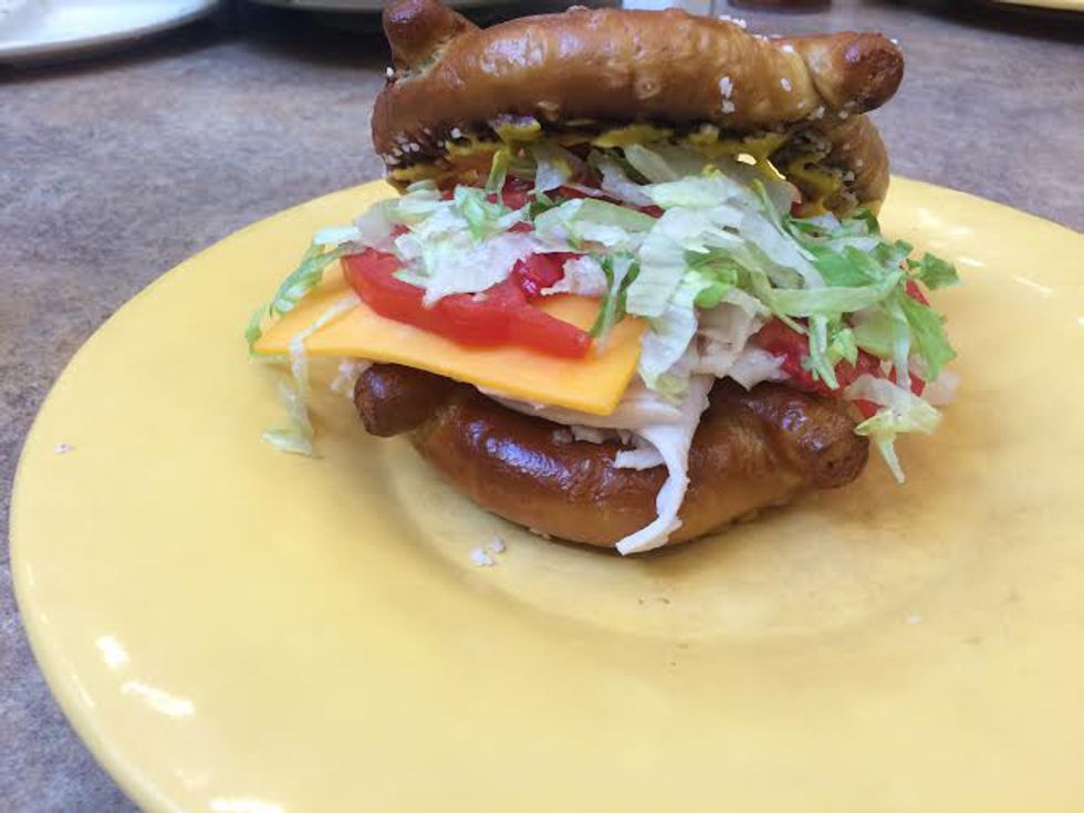Like salads, sandwiches can get dangerously boring. Taking your favorite sandwich ingredients and putting them between two warm soft pretzels raises your sandwich game to a level you've never even seen.