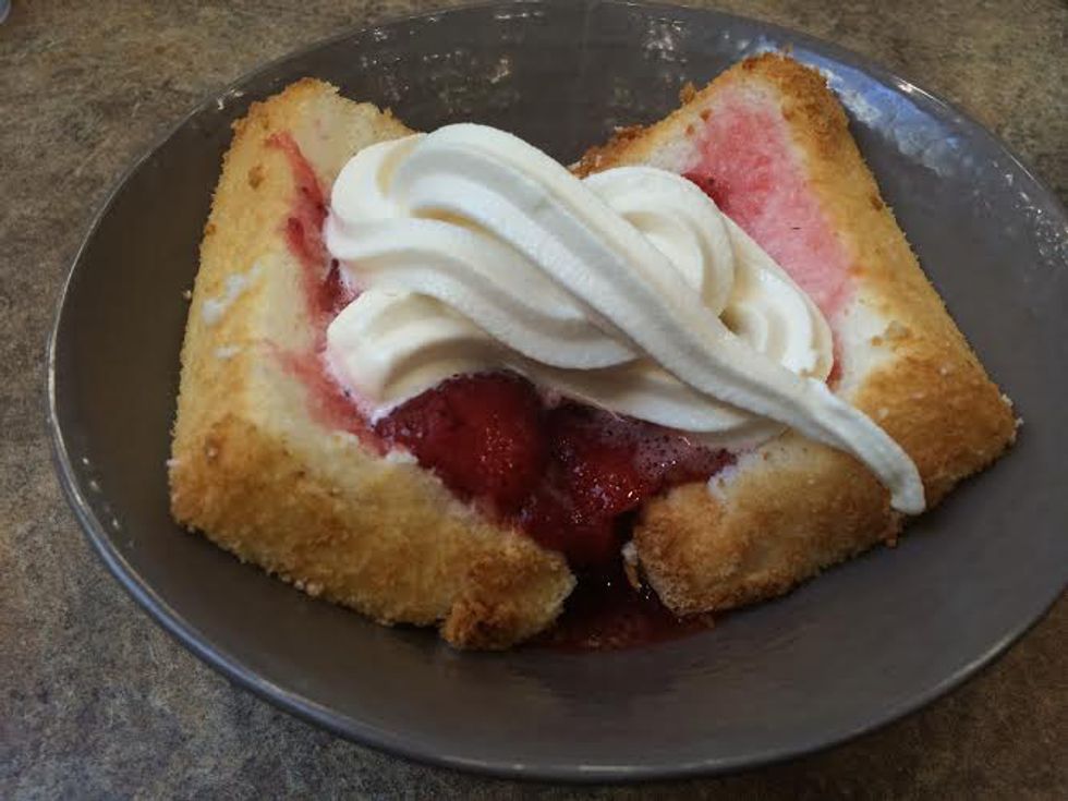 "Strawberry shortcake with vanilla soft-serve"