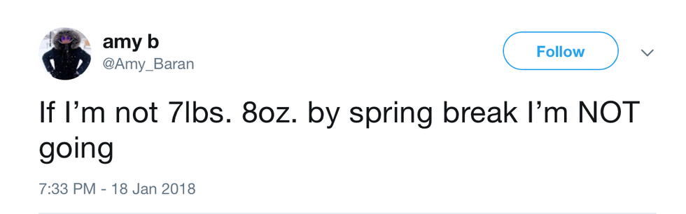 As a procrastinator, I don't really see the value in doing things until the absolute last possible second. Yes, it always feels so much better when I do it in advance, blah blah blah, I know. But, here I am, waiting until the last two weeks to decide to try and get in shape for spring break. Now, if I know anything about fitness, which I certainly do not, it's that you need to work out and eat well for like, a long ass time before you see results. And, as well as being a procrastinator, I'm also not that patient. Like, I ran four miles yesterday, why don't I have a six-pack? PLUS I ate a salad for lunch. I'm like, so healthy. Where's my thigh gap?