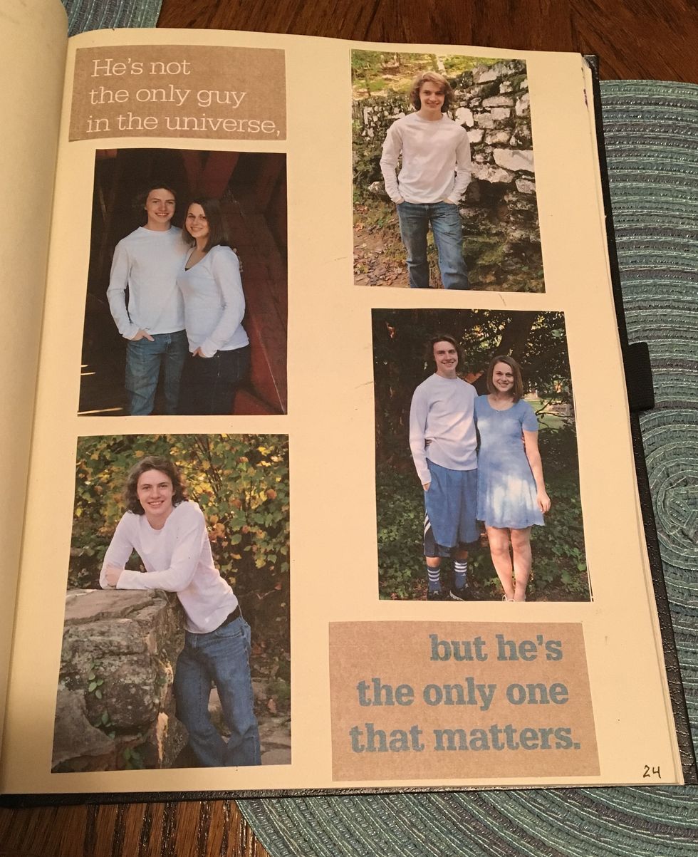 For this project, I bought a sketchbook from Hobby Lobby and then I put a whole mix of things in it! I included memories, pictures, puns, and lists. I also bought the extra inspirational saying stickers that you see in this picture at Hobby Lobby in a scrapbooking pack!