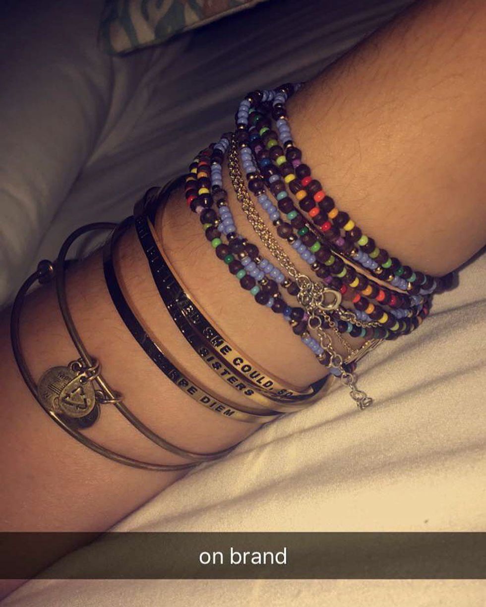 One of my good friends gave me one of these bracelets for my birthday this year and since then, I have been obsessed. I have added two more to my collection of bracelets on my left wrist. These bands are so cute and easily fit in with other jewelry and "my brand."