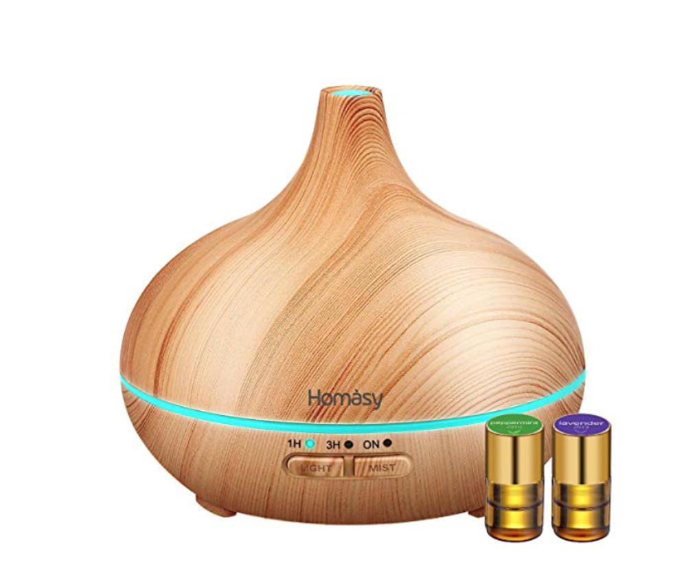 Turn your room into an oasis with this home essential oil diffuser, which includes bottles of peppermint and lavender oil. It also has LED lights for a nice aesthetic vibe.