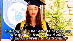 The speech that Rory gives at her high school graduation may be the best moment in television history. She made us cry and she made us wish that we had been valedictorian of our high school so that we could give that exact same speech. With all the people that helped raised her through the years watching her (Luke, Sookie, Jackson, her grandparents, and Lorelai), Rory gave the best graduation speech ever. It lacked the usual stigma of "follow your dreams" and "you have your whole lives ahead of you" which made it all the better. Her speech focused on what she learned both in and out of the classroom and thanked all the people who helped her get to where she was: a valedictorian on her way towards Yale University.