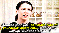 I remember feeling bad for Lorelai, thinking that she settled and would never be given the opportunity to attain what Rory had and wondering how in spite of this, she could seem so content. Could that scream “ignorant 13-year-old” more?