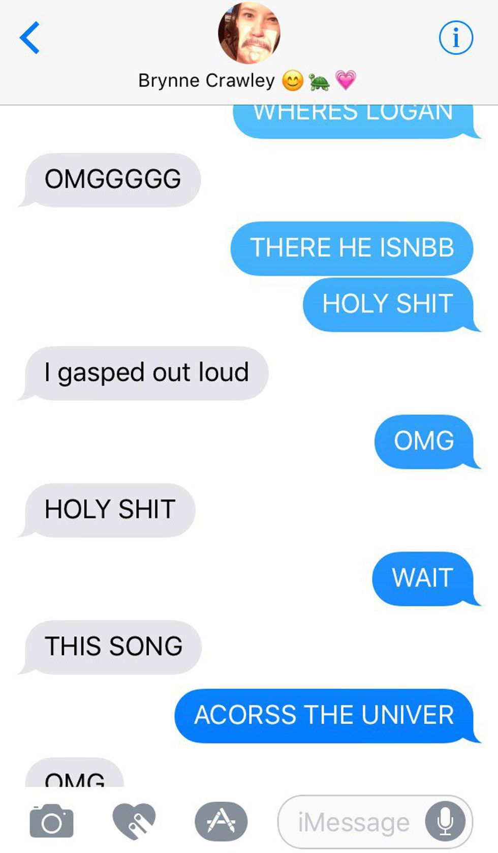 "Im ceyingsorry"...moments before Logan's first appearance.