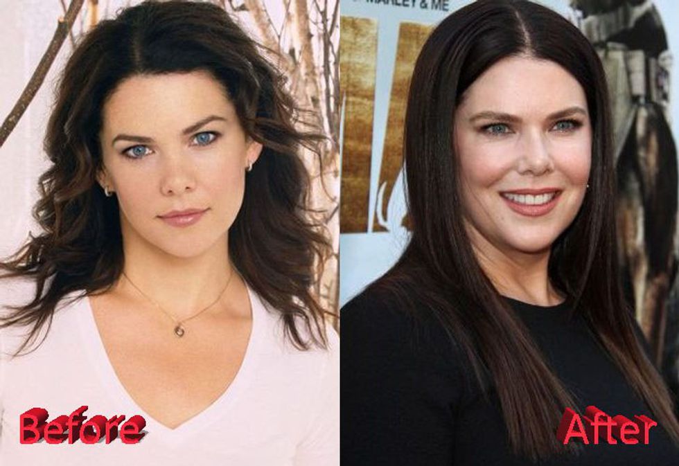 First, the amount of work Lauren Graham has done to her face is hard to ignore. Although not confirmed it appears that Lorelai has gotten a nose job and possibly some face fillers. It can be attributed to getting older and gaining weight, but I strongly believe she's gotten some work done. You be the judge.