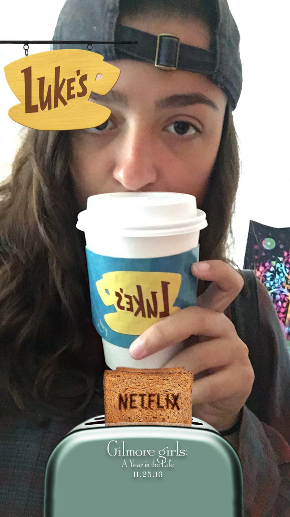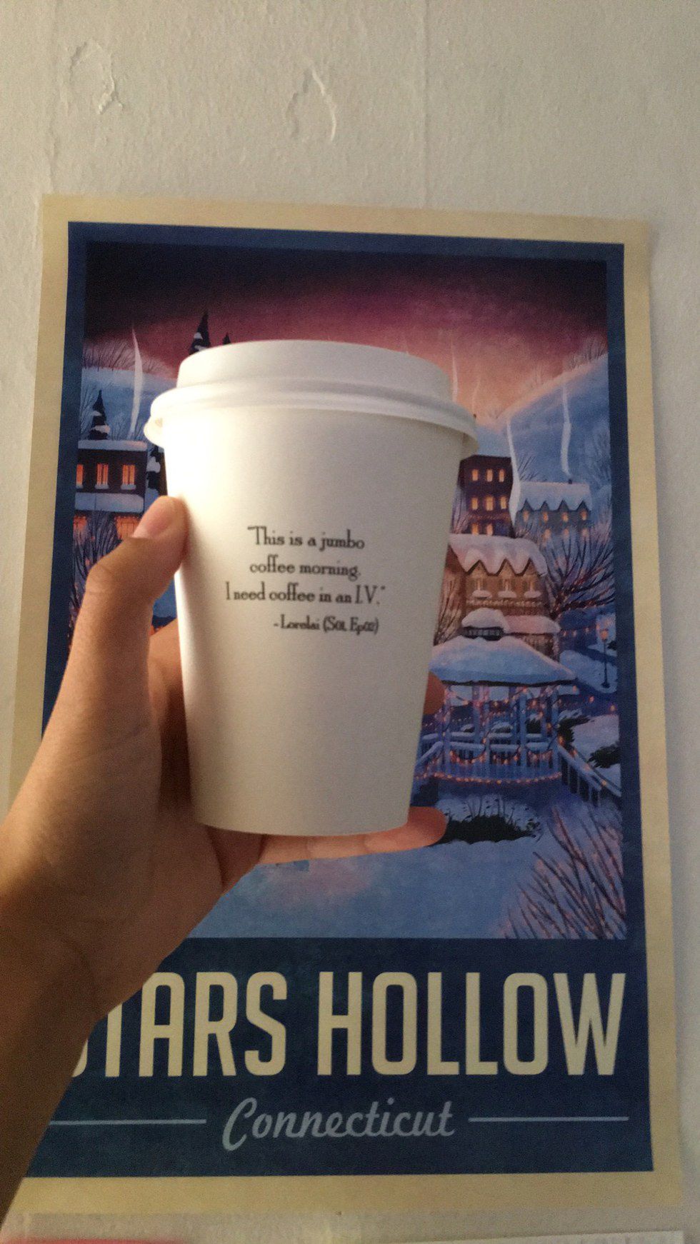 I woke up to the sound of my alarm, as did a bunch of Gilmore Girls fans knowing that we had to get to our location early before a line formed. Luke's would be serving free coffee for 5 hours starting at 7am and I had to get my cup before the day ended. Granted I had a test at 11:30 but it didn't matter much to me. We hit the road, and were off on our 40 minute drive to a random coffee shop in Rochester that stood as Luke's for the times being. Flannel and backwards hat on fleek.