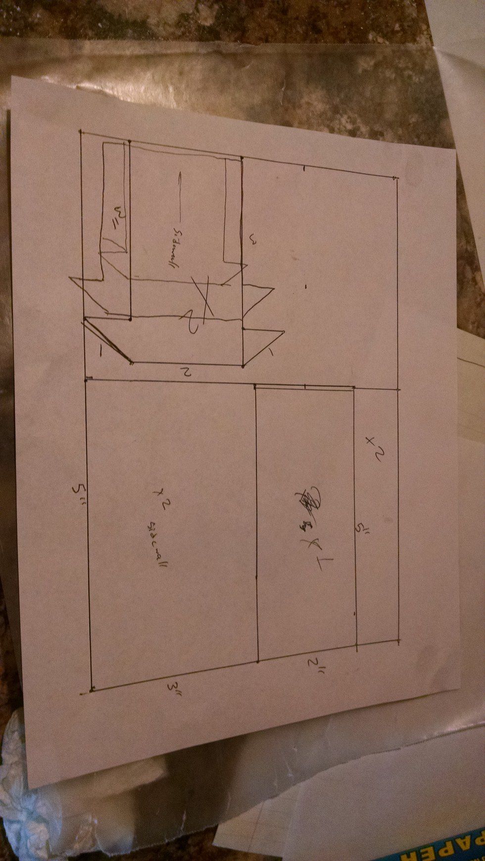 This year, I drew up the plans with my father, trying to figure out the best design. I wanted a flat roof, which meant it was going to take seven separate pieces of gingerbread to get the house put together. I came up with the general measurements, sketched out the final product, and got to it.