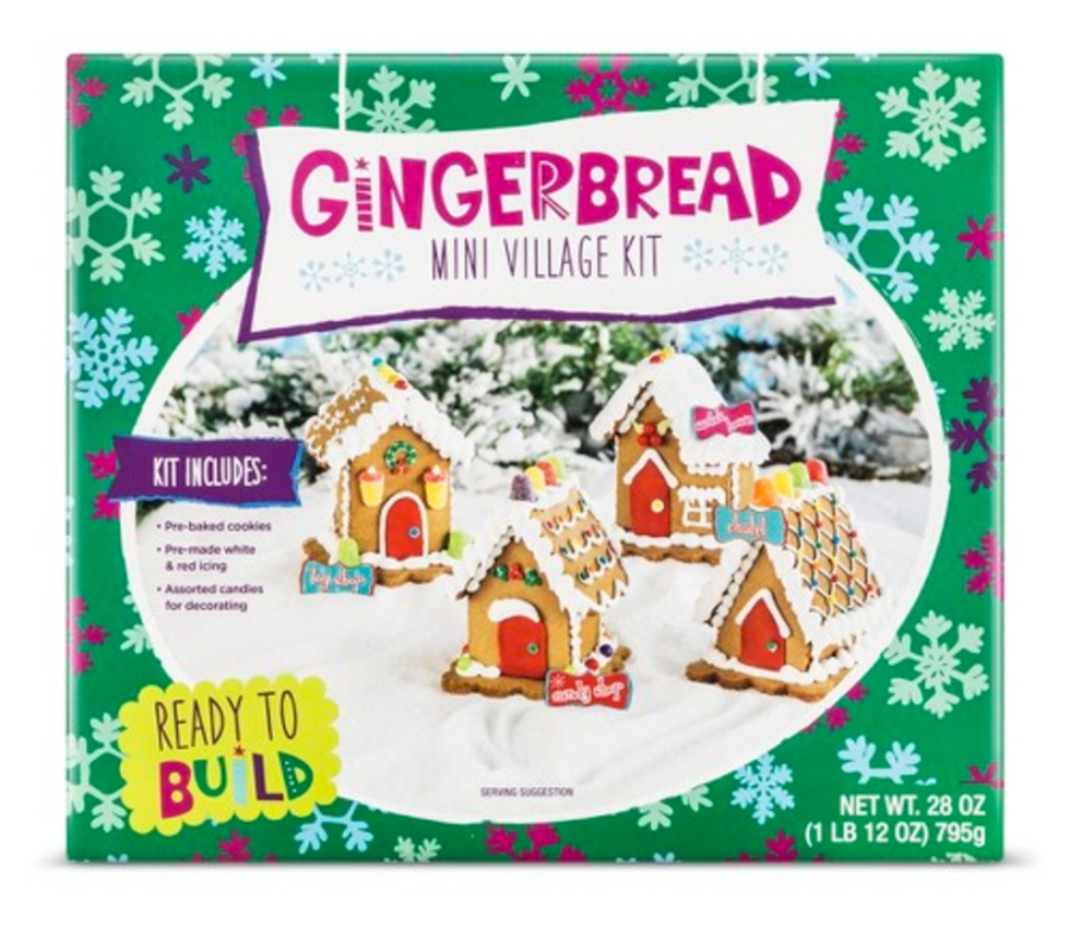 Not so different from the regular gingerbread house, except it's way cuter. The mini village kit comes with 4 mini gingerbread houses of different shapes. This one is extra fun because instead of just one house you get to make 4 and use different styles 9if you want) on each to reach ultimate creativity. This Mini Village kit is available at Target for $9.99.