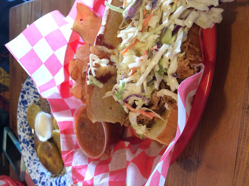 Yum! Chicken barbecue sandwich with slaw + fried green tomatoes were delicious! A lovely afternoon meal.