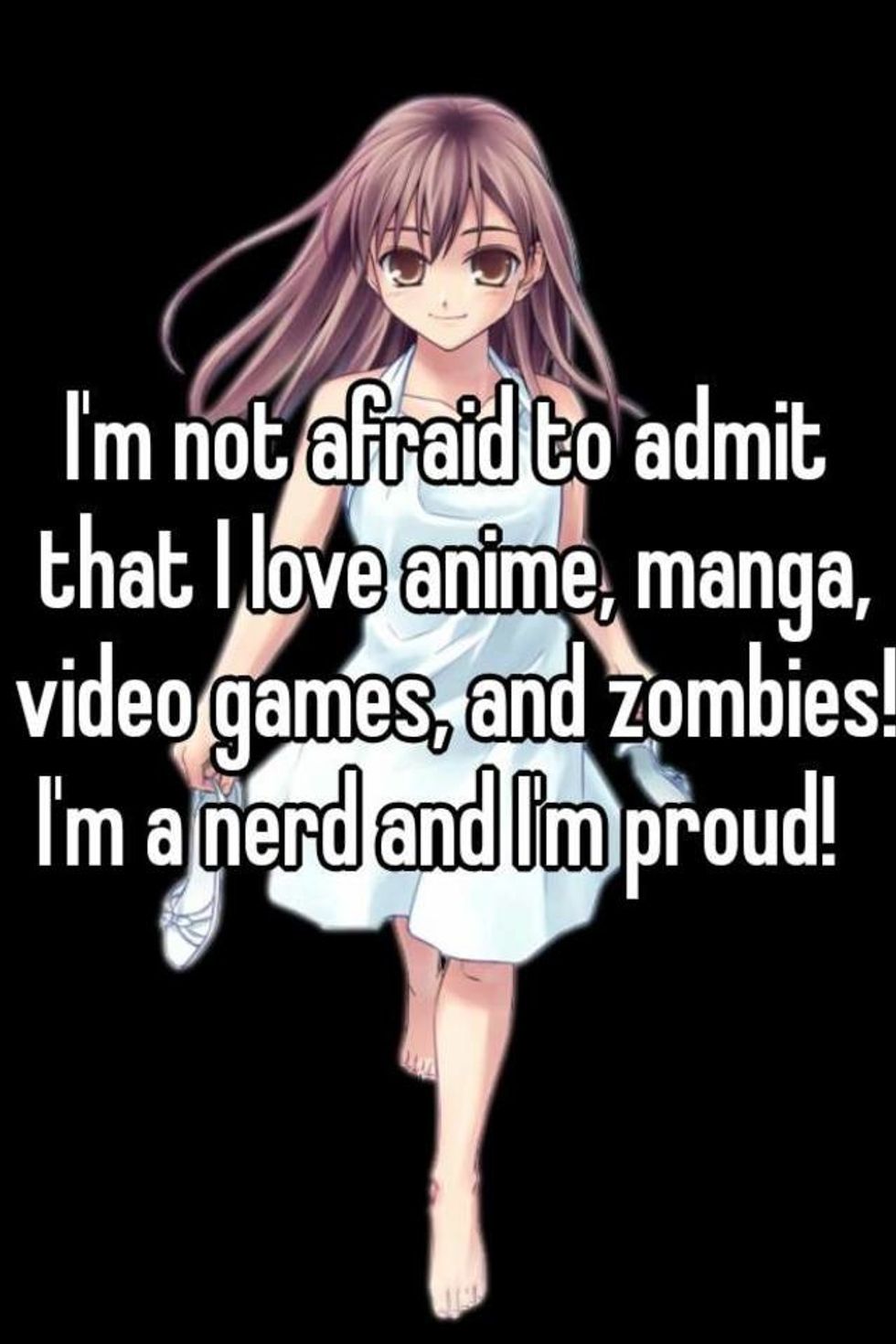 Finally, here I am, a 20 year old in college. I fully accept and embrace me being an otaku. I don't hide it at all, I show it off for the world to see. I go to classes with anime backpacks, I wear anime clothes, my entire room is covered with anime posters, I have anime plushies and keychains, my notebooks have designs of anime, and I have never been happier! I can't believe back in high school I was willing to give all this up.