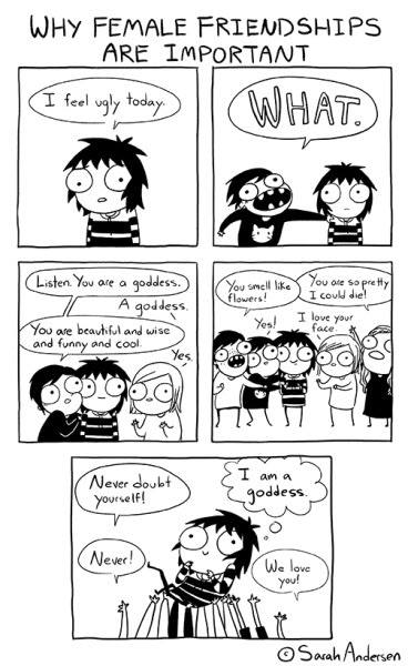 As women, specifically young women, the necessity for a community that takes you in and understands you is central to our development in a society of individualism. With my female friends I know that there is very little that cannot be discussed. We allow ourselves to be completely cut open and really explore our feelings. Female friendships also highly influence our own self-esteem and conceptions of ourselves. This is because our friends see us for the person that we truly are and they have no problem complimenting and expressing adoration towards us. This also has a lot to do with the fluidity of female sexuality, where we are closer physically because we yearn for that kind of intimate relationship and warmth. Most women have no problem hugging and kissing each other or even going to the bathroom together.