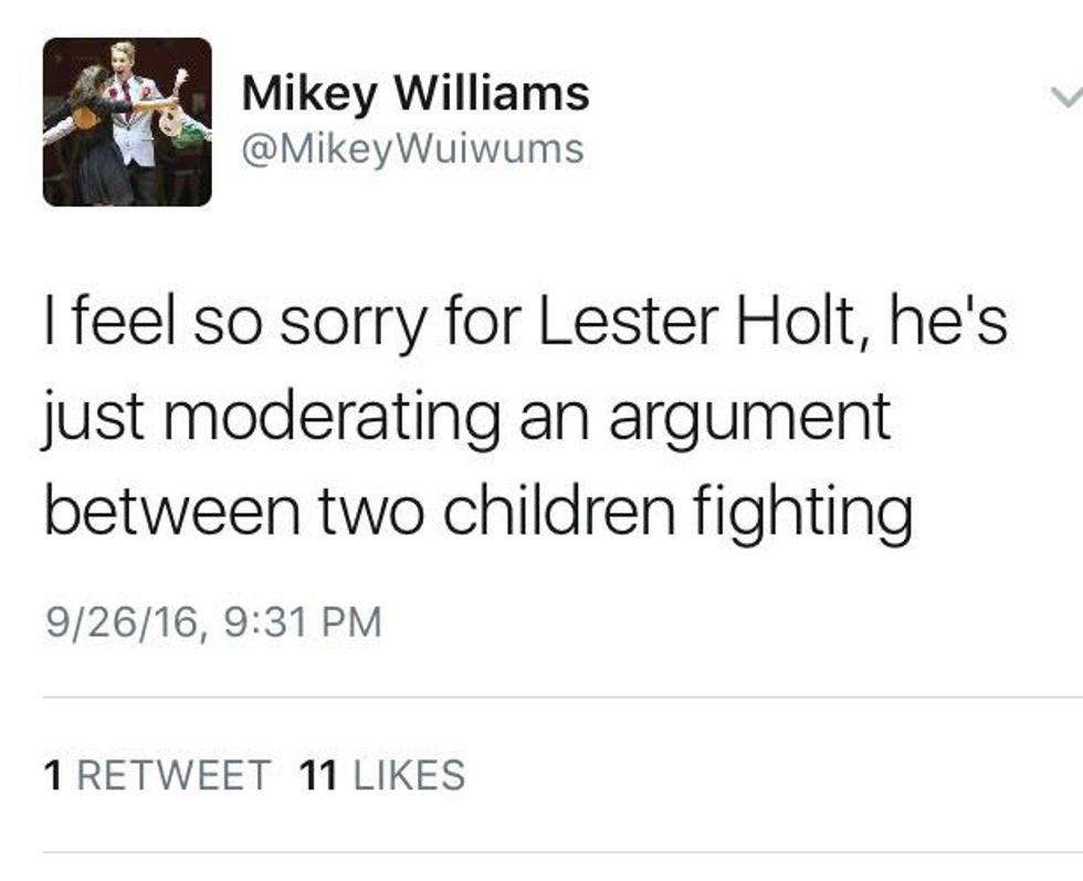 So America I'm asking you, someone check on Lester Holt. Someone give that man a hug, an Advil, and a stiff drink. Because after that debate, he needs it.