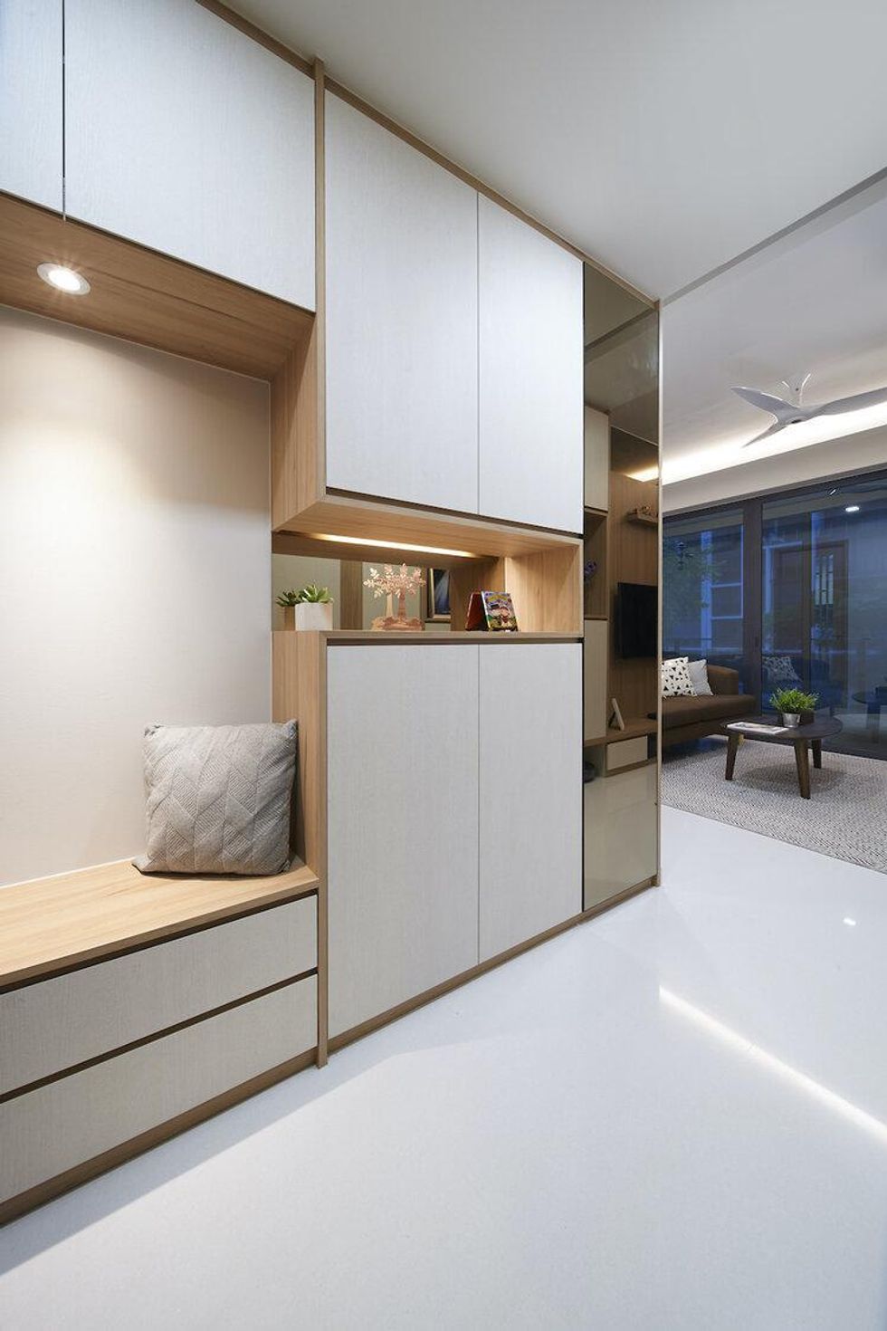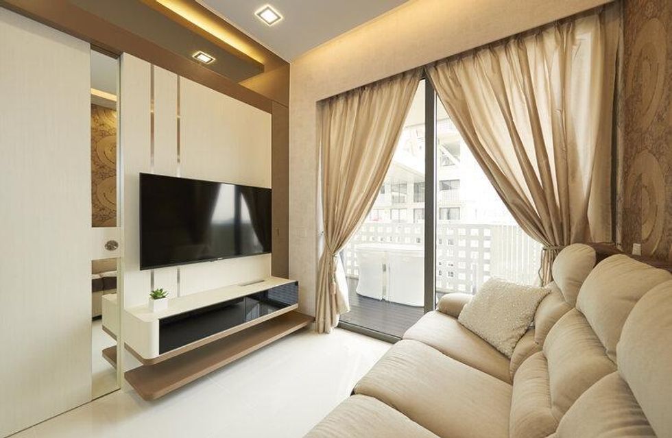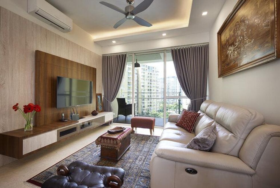 One of the ways in which you can completely transform the living room’s appearance is to create a new and exciting TV console wall. It will not only serve as the accent wall of the room but also bring sme grandeur and elegance to the room’s interior. You can take inspiration from one of the design portfolios by AC Vision where they have created a beautiful and elegant TV console that runs from the floor to the ceiling. And it is not just a simple console; notice the small vertical mirror detailing in the white console area. The white area is bounded by wooden borders that are themselves layered one over the other. Indirect and recessed lighting between these layers of wooden architecture create a dramatic effect and help to give a wow effect to the interior. Notice how everything else in the room is simple and minimalist but this grand console helps elevate the room’s appearance and ambience several notches.
