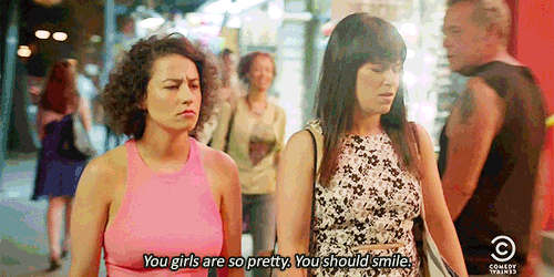 "Smile baby! You're so pretty!" It's a cat-caller go-to and it's infuriating, because nothing makes you want to smile less than unwanted sexual attention at four in the afternoon from a guy on a hoverboard. But when it's a decision you've consciously made for yourself it can be super empowering. Even when you're in a garbage-y mood, it can make things marginally better to smirk instead of scowl. While a scowl says "I'm having a rough day and I kinda hate everything right now," a smirk says "I have a secret or maybe I just thought of something really funny that happened earlier, either way I am putting positive energy out there as opposed to negative and I seem fun and interesting."