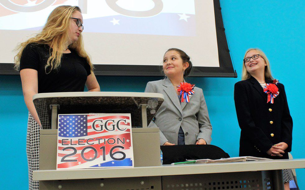 The girls were able to vote for their favorite party and candidate in the Cake v. Pie debate after hearing each candidate make their campaign speeches and answer a few questions regarding the Glam Girls' concerns for the club. These girls worked hard on their campaigns and talking points, as well as campaign commercials and posters.