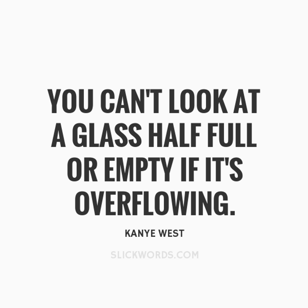 Kanye West said it best, "you can’t look at a glass half full or empty if it’s overflowing." This applies to everything despite a red solo cup from a frat party, don't fill that up to the brim; I learned this the hard way.