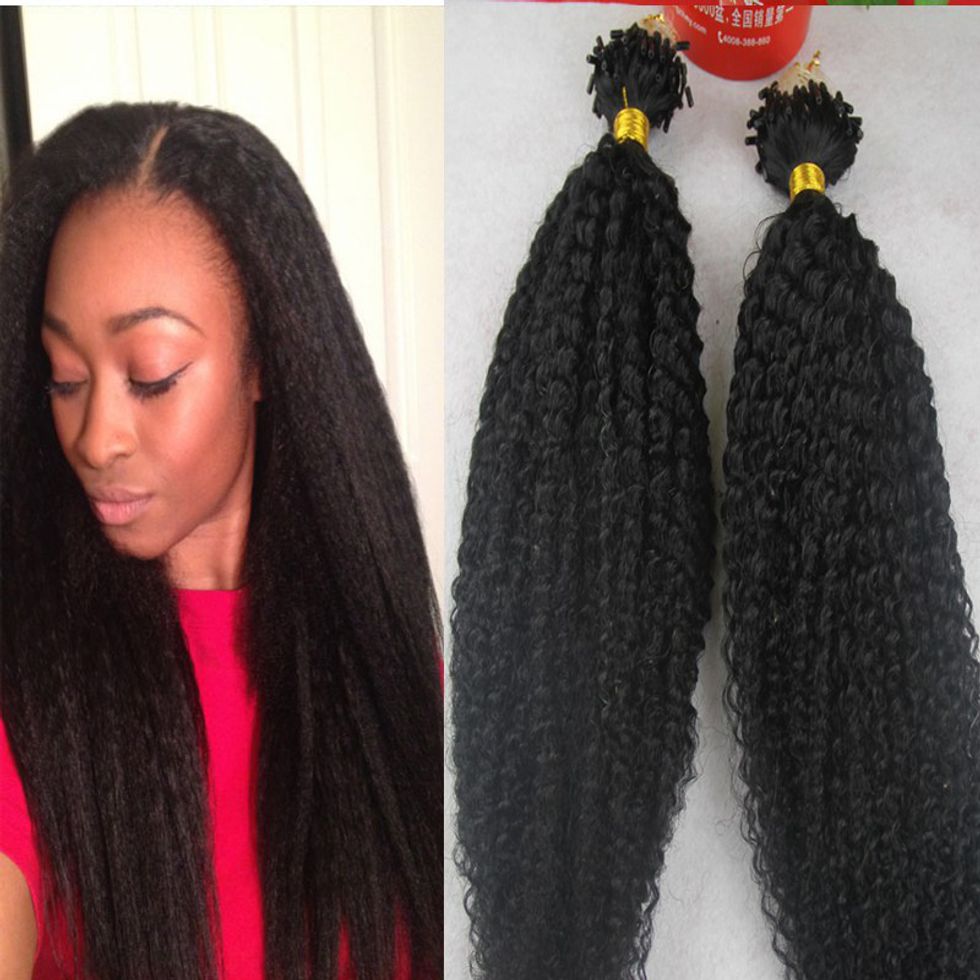 Silk or Natural Micro Extensions can be installed on a track, with a pincher heat tool, through loops or clamps giving you the chance to pick the safest quickest install method for your hair. Natural micro extensions allow you to have leave- out and a layered textured look making the extensions almost undetectable every time. Even though this method can be tedious, patience is key to to avoid breakage during your install while gaining the length you want. Micro loop hair extensions can be found at AliExpress.