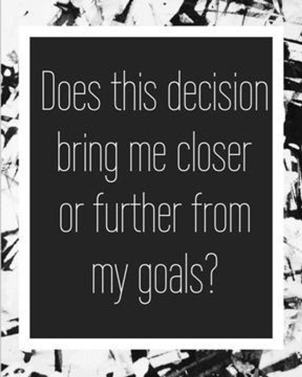 #1. Does this decision bring me closer to or further away from my goals? This is probably the most important question of them all. Think about it- what you eat for breakfast, who you hang out with, where you choose to study or what you do on the weekend can all have an impact on your goal, depending what your goal is. I ask myself this on weekends a lot and when I'm out with my friends. It really helps in the context of drinking or partying. I ask myself: Is drinking and partying going to bring me closer to my fitness goals or further away? The answer is pretty clearly further away so I reconsider what is more important to me. This does not mean I never go out and drink and have fun with my friends, I'm just aware of what my priorities, what I am choosing, and why I am choosing it.