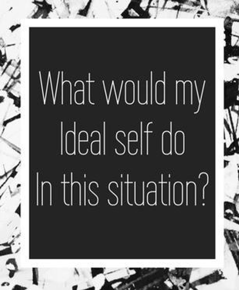 #2. What would my ideal self do in this situation? Think about who you will be when you accomplish that big goal you've been dreaming of. What does that person look like? How does that dream person act? Well, if you want to be that person, you have to start acting like that person. For example, if your goal is to get better grades, ask yourself what the straight A version of yourself would do when presented with an option to study or stay home. The ideal self would probably study in this situation. Put this question in your own context- WHO do you want to be? How does that person act? What do they do? What decisions do they make?