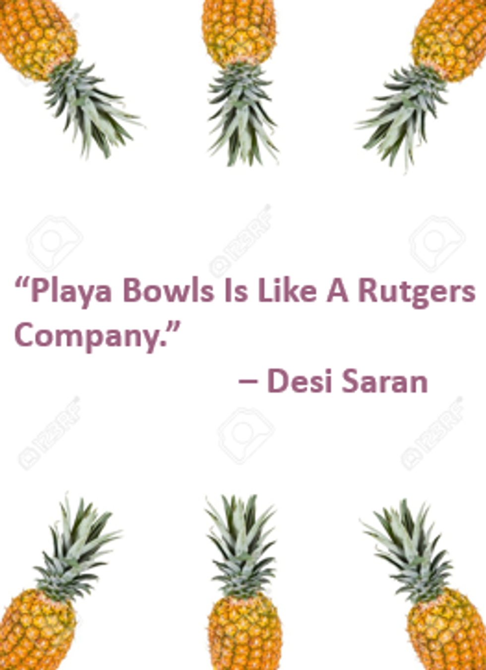 Throughout our interview Desi shared many meaningful thoughts, but one phrase that really stood out to me was this; “Playa Bowls is like a Rutgers company.” He, like thousands of anxious fans, hopes Playa Bowls can give back to where its roots came from.
