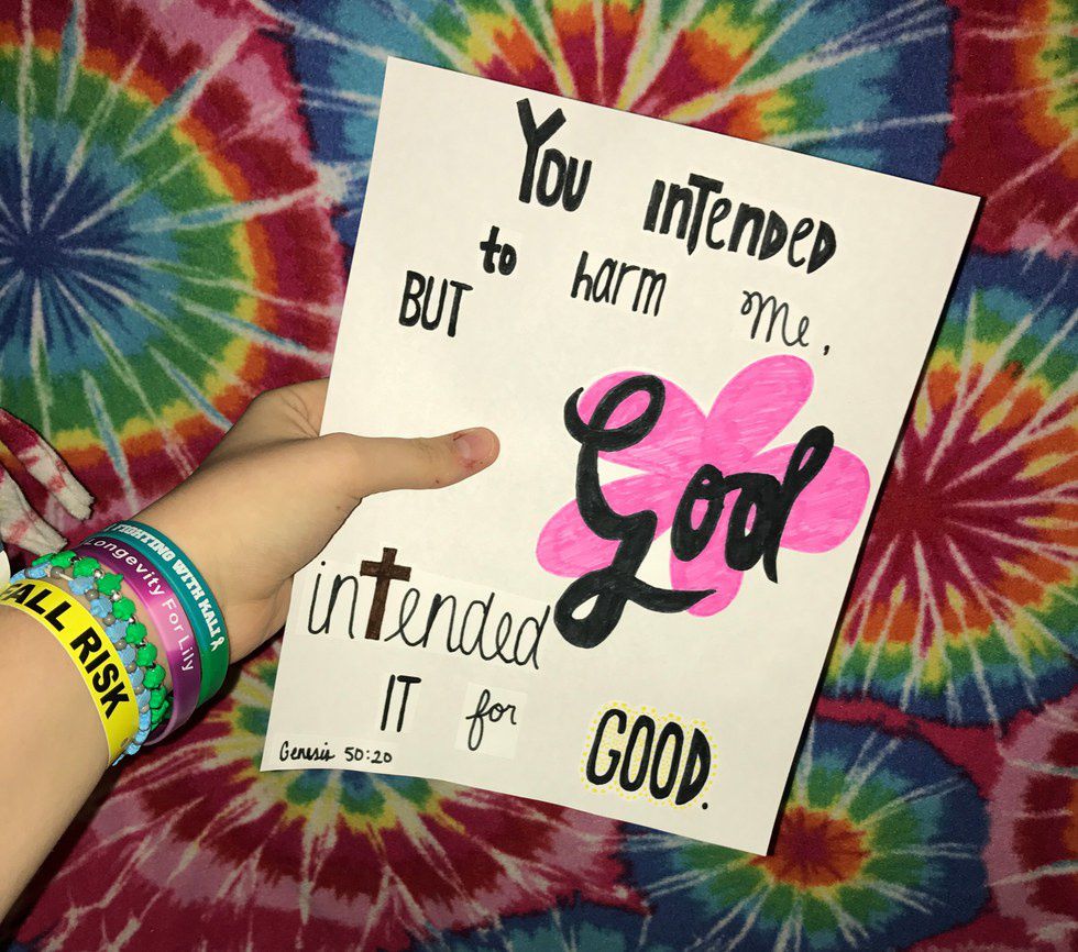 I came across this verse on accident, and my outlook toward my illnesses has completely changed since. These illnesses harm me physically, mentally, and even spiritually every single day, but the thing that I am able to fall back on at the end of each day, no matter how draining, is that “God intended it for good.” He chose me to fight back against chronic illness for a reason, and although those reasons are as clear as mud to me at times, I keep the faith that one day I will know why; until then I will fight.